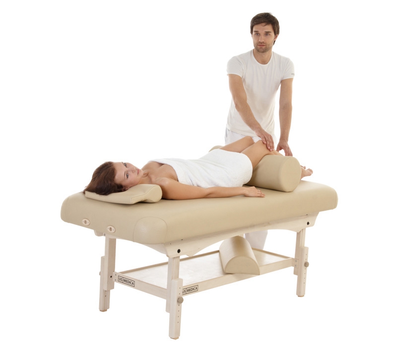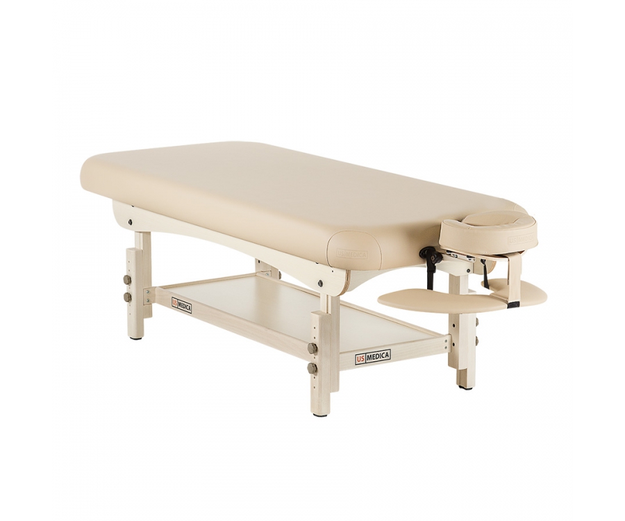 Стационарный массажный стол US Medica Atlant имеет прочный каркас из бука, что делает стол не только устойчивым, но и максимально надежным при регулярном использовании. Комфорт клиенту во время массажа на данном столе обеспечивают упругий вспененный наполнитель и качественная обивка из арпатека премиум-класса Skin Touch.