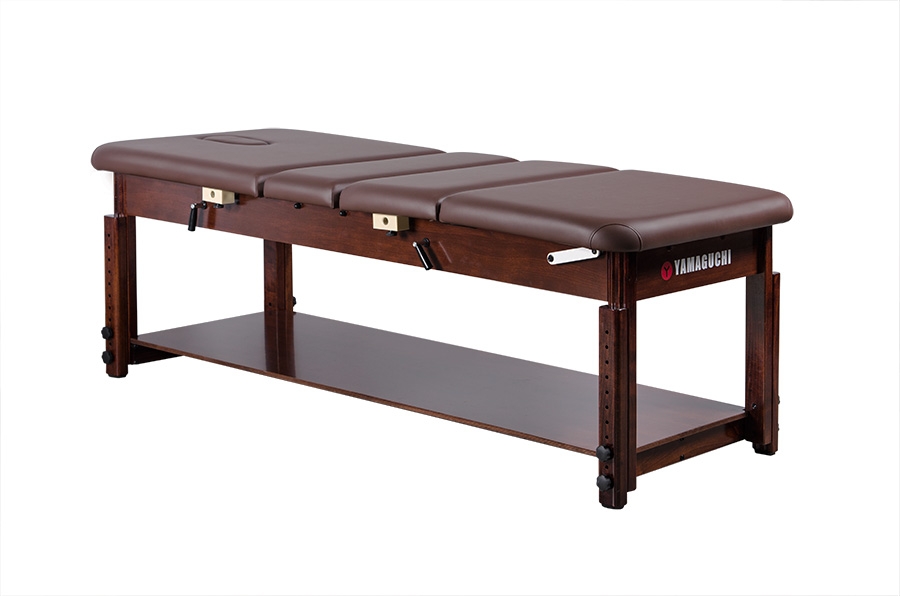 Стационарный массажный стол Yamaguchi Naomi обладает особой конструкцией, благодаря которой можно без особого труда отрегулировать секции для ног и спины